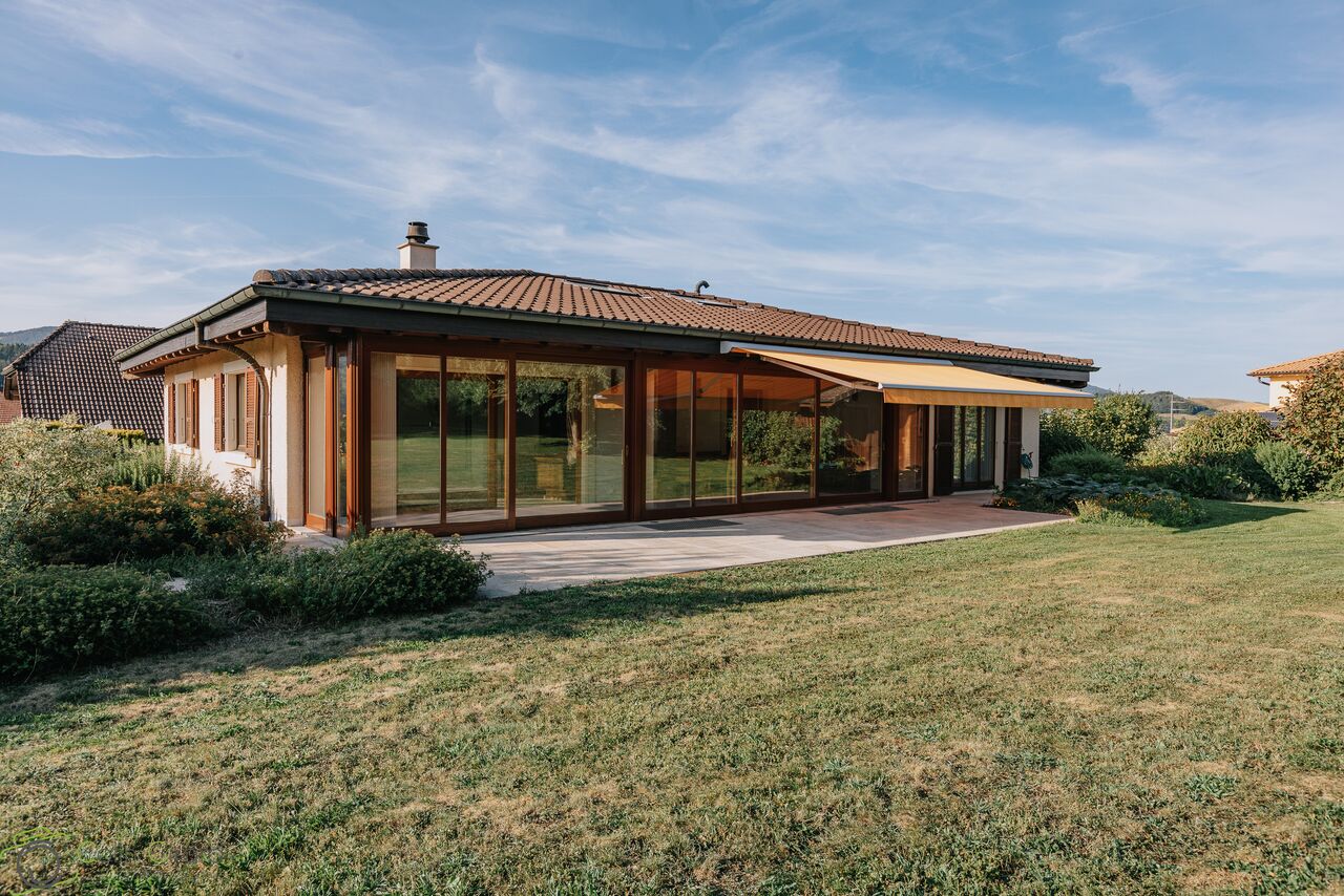 Cette superbe maison de 311m2 est construite sur une parcelle de 1200m2 est située dans les hauteurs de Bassecourt dans un quartier résidentiel.